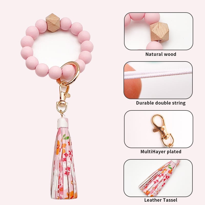 🌸Intricately crafted with silicone and wooden beads, this keychain offers a one-of-a-kind aesthetic appeal, making it an exceptional choice for gifting.